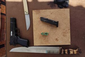 Ekiplerce yapılan incelemelerde; E.Y. yakalanırken, konutta gerçekleştirilen aramalarda; 1 adet kurusıkı tabanca, 9 adet kurusıkı mermi, 1 adet pala ve 1 adet bıçak ele geçirildi.