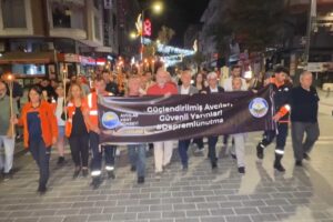 Meşalelerle yapılan ve ‘Güçlendirilmiş Avcılar, İnançlı Yarınlar! Zelzelesi unutma’ yazılı pankartın taşındığı yürüyüş, Sarsıntı Anıtı’na kadar devam etti.