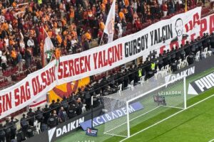 Taraftar kümesi UltrAslan, “Başın sağ olsun Sergen Yalçın!” yazılı pankart astı. Gürsoy Yalçın, 5 Şubat günü tedavi gördüğü hastanede hayatını kaybetmişti.