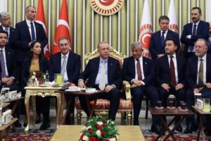 Sayın Genel Liderimiz da diğer siyasi parti genel liderleri üzere davete icabet ederek, salonda yer almış, o esnada Meclis Başkanı’nın kendilerine yer vermesi üzerine, Sayın Cumhurbaşkanı ile yan yana oturmuştur. Sayın Genel Başkanımız burada, yeni yasama yılının ülkemize ve milletimize güzel olması temennisini hem Sayın Cumhurbaşkanı’na, hem de orada bulunan değerli haziruna iletmiştir.