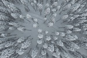 Sisle birleşen ve ak pak olan ormanlık alanlar dronla izlendi.
