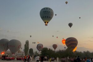 Sabah erken saatlerde havalanan hava balonları, bir müddet Kapadokya semalarında dolaştı. Bölgeye gelen yerli ve yabancı turistler, balonlarla fotoğraf çektirdi. Yaklaşık 1 saat Kapadokya semalarında uçan hava balonları, hoş manzaralar oluşturdu.