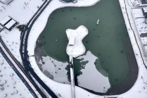 Gölet ile Erkilet Doruğu’nda oluşan sis, dronla görüntülendi.