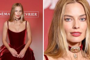 Robbie’nin tarz tercihi mücevherleri kadar dikkat cazipti. Ünlü stilist Andrew Mukamal’ın hazırladığı kombinle kırmızı kadife Chanel balo elbisesi giyen oyuncu, bel çizgisini vurgulayan korse ayrıntısı ve tüylerle süslenmiş uzun kuyruğuyla büyüledi.