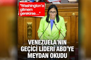 İsim vermeden ABD’nin ülkesine yönelik baskılarına değinen Rodriguez, “Geçici devlet başkanı olarak tehdit edildiğim için korkuyor değilim. Hayır. Tüm Venezuela tehdit altında. Şayet bir gün geçici devlet başkanı sıfatıyla Washington’a gitmem gerekirse, bunu sürüklenerek değil, dimdik yürüyerek yaparım. Bunu da üç renkli bayrağımızla yaparım.” tabirlerini kullandı.