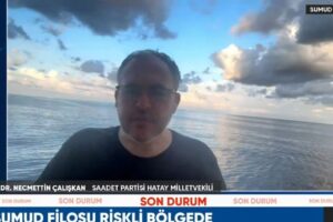 Saadet Partili Necmettin Çalışkan, Halk TV’de Beğenilen Şeker’in sunduğu Yeni Bir Sabah programına canlı bağlanarak gelişmeleri aktardı. Şu an gemide olduklarını belirten Çalışkan, “Filomuz 50’nin üzerinde gemiden oluşuyor. Öndeki gemiye bu gece prestijiyle akın teşebbüsü oldu. İsrail askerleri gemilere girmeye çalıştı fakat dalga yüksekliği nedeniyle geri çekildiler” dedi.