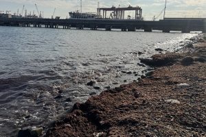 Tekirdağ’da lodos nedeniyle kıyıda kırmızı yosun birikti. Kentte 3 gündür tesirli olan lodosla oluşan dalgalar, yosun ve atıkları kıyıya sürükledi.