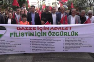 “Bizler, Trabzon’un esaslı meslek kuruluşları, sivil toplum kuruluşları ve vicdani sorumluluğunu üstlenmiş her bölümden vatandaşlar olarak, sivillere yönelik tüm atakların anında ve şartsız olarak durdurulmasını talep ediyoruz. Savaş hukuku kuralları gereği, siviller hiçbir formda maksat alınamaz. Gazze’ye besin, su, ilaç, tıbbi gereç ve yakıt başta olmak üzere tüm insani yardımların manisiz ve kesintisiz bir formda ulaştırılması sağlanmalıdır. İnsani yardım koridorları teminat altına alınmalıdır. Milletlerarası Adalet Divanı, Memleketler arası Ceza Mahkemesi ve Birleşmiş Milletler başta olmak üzere tüm milletlerarası kuruluşlar sorumluluklarını yerine getirmelidir. Savaş cürümleri ve insanlığa karşı cürüm işleyenler hesap vermelidir. İnsani yardım filolarının Gazze’ye inançlı ve manisiz biçimde ulaşması memleketler arası hukuk çerçevesinde teminat altına alınmalıdır.