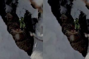 Yaban hayatının sessiz güzelliği: Karlar içinde yaban kedisi görüntülendi