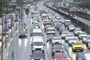 İstanbul’da sabah saatlerinde tesirli olan yağışlı hava sonrası kent genelinde trafik yoğunluğu arttı. Haftanın birinci iş gününde işe gidiş saatlerinde D-100 karayolu başta olmak üzere birçok ana arterde araçlar zahmetle ilerledi.